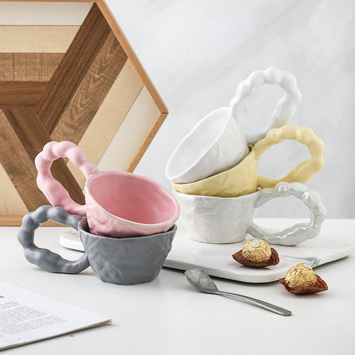 Einzigartige Tasse mit gestreiftem Design und großen Henkel