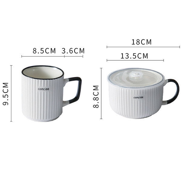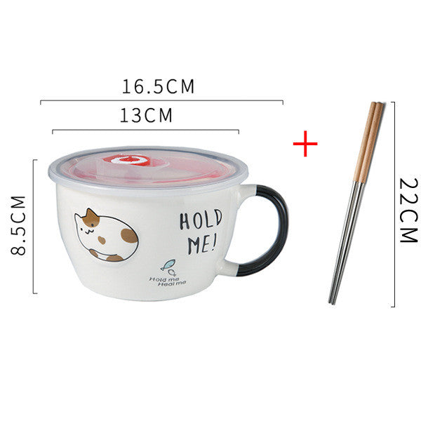 Set Niedliche Nordische Suppenschüssel, Individuelles Geschirr, Ramen Handbemalt Übergroße Schüssel mit Essstäbchen und Nudeltasse mit Henkel. Material: Porzellan