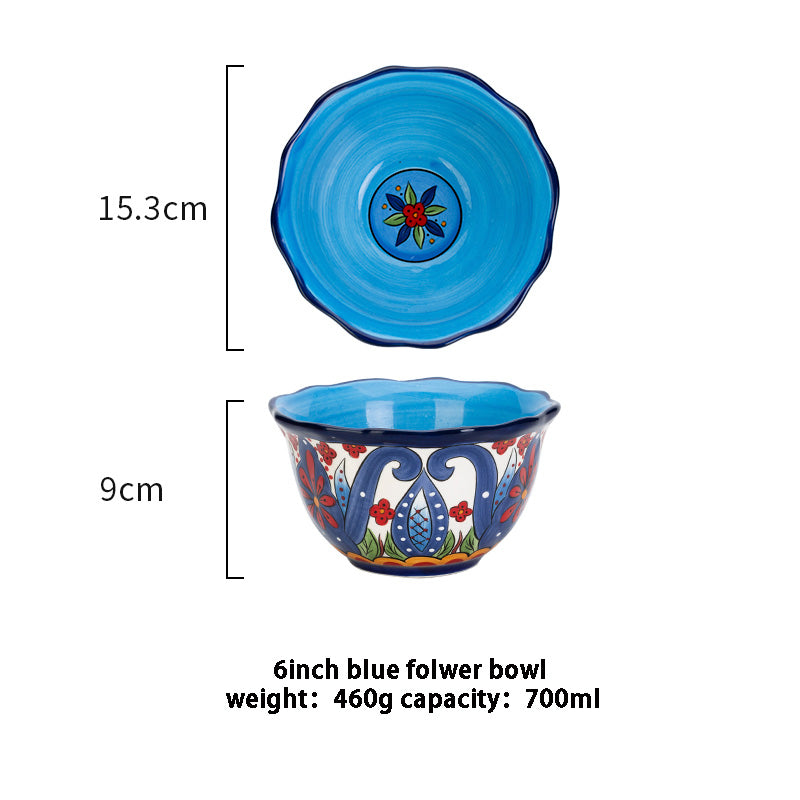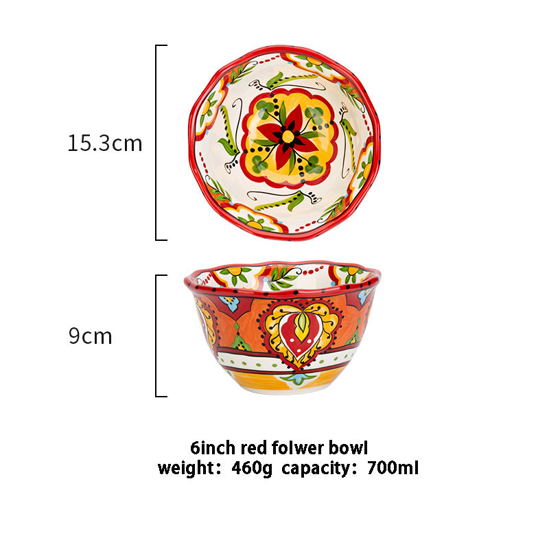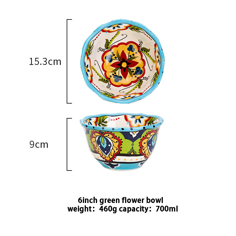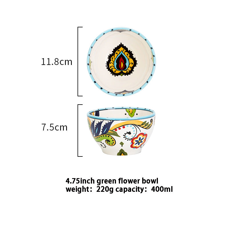 Entdecke unsere wunderschöne Keramikschale - die perfekte Ergänzung für Ihre Küche oder Ihr Esszimmer! Diese Schale in einzigartiger Bohème-Form ist so gestaltet, dass sie Ihrer Einrichtung einen Hauch von Kunstfertigkeit verleiht. Das aufwendige Design mit wunderschönen Pflanzen und Blumen im europäischen Stil macht sie zu einem echten Einzelstück.